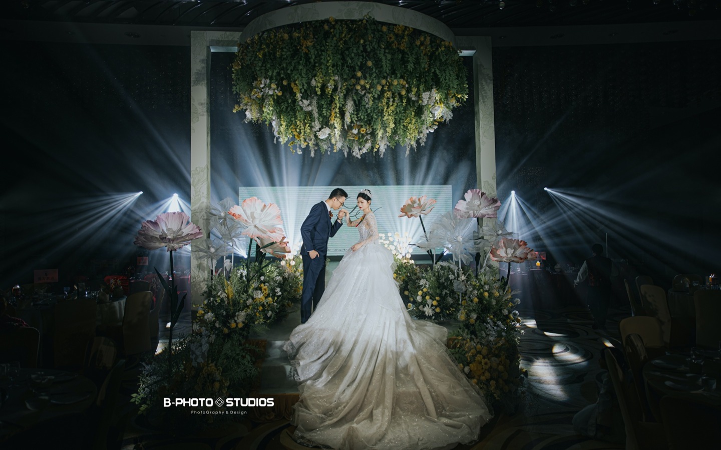 4.请提前和摄影师沟通婚礼现场的灯光。以免拍出的照片效果过于昏暗。